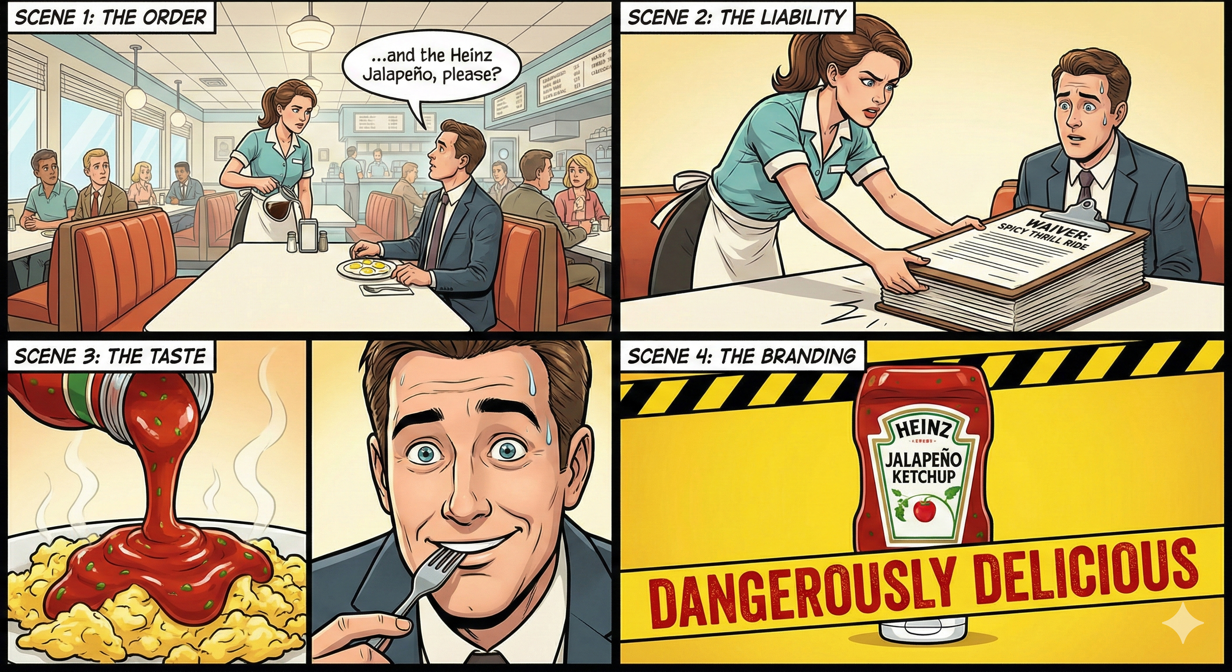 Heinz Jalapeño Ketchup is so delicious, it should come with a warning, but that won’t stop people from wanting to try it. The “Dangerously Delicious" campaign introduces a playful concept where Heinz Jalapeño Ketchup is treated like a thrilling, almost forbidden breakfast experience. The ketchup's irresistible flavor isn't just a condiment, it's a temptation that may transform your breakfast routine forever. The more we warn people about this ketchup, the more they’ll crave it.